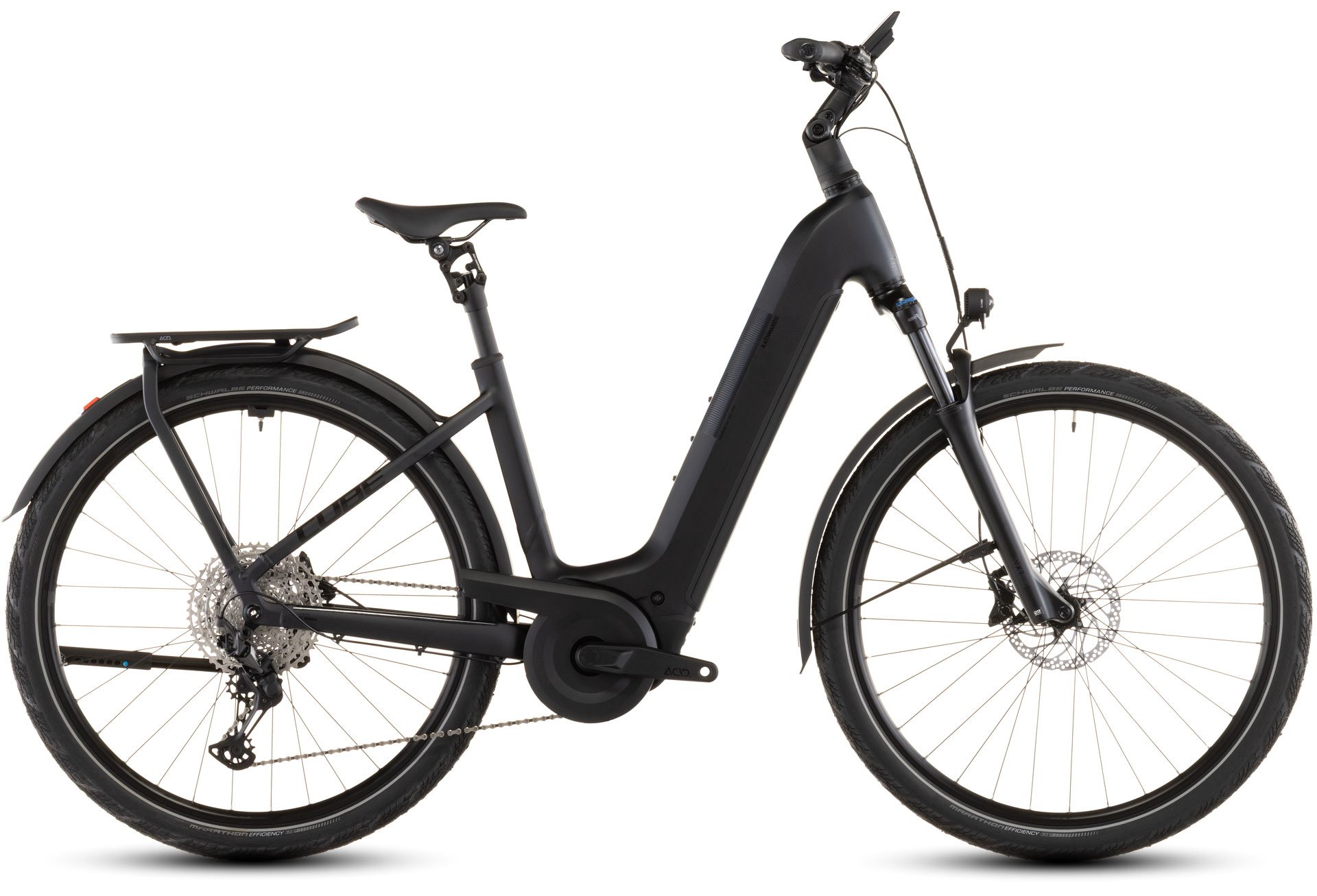 Der Tiefeinsteiger-Rahmen des CUBE Kathmandu Hybrid macht seinem Namen alle Ehre, denn das Auf- und Absteigen gehen damit supereinfach und das Abenteuer kann direkt losgehen! Doch da ist noch mehr, zum Beispiel der samt 800 Wh PowerTube Akku ästhetisch und sauber ins Design integrierte CX Motor von Bosch und unsere Efficient Comfort Geometry, die harmonisch mit der 100 mm Federgabel Hand in Hand arbeitet, was die Kontrolle vor allem bei schwierigen Bedingungen optimiert. Dazu die interne Zugverlegung, die den cleanen Look des Chassis unterstreicht. Was noch? Ein vielseitiges, beinahe unzerstörbares UDH für einfache Ersatzteilverfügbarkeit, ein integrierter Kettenschutz und unser stabiler, robuster, überaus formschöner integrierter Gepäckträger IC 3.0, auf dem alles Platz findet, was auf Entdeckertour mit muss.