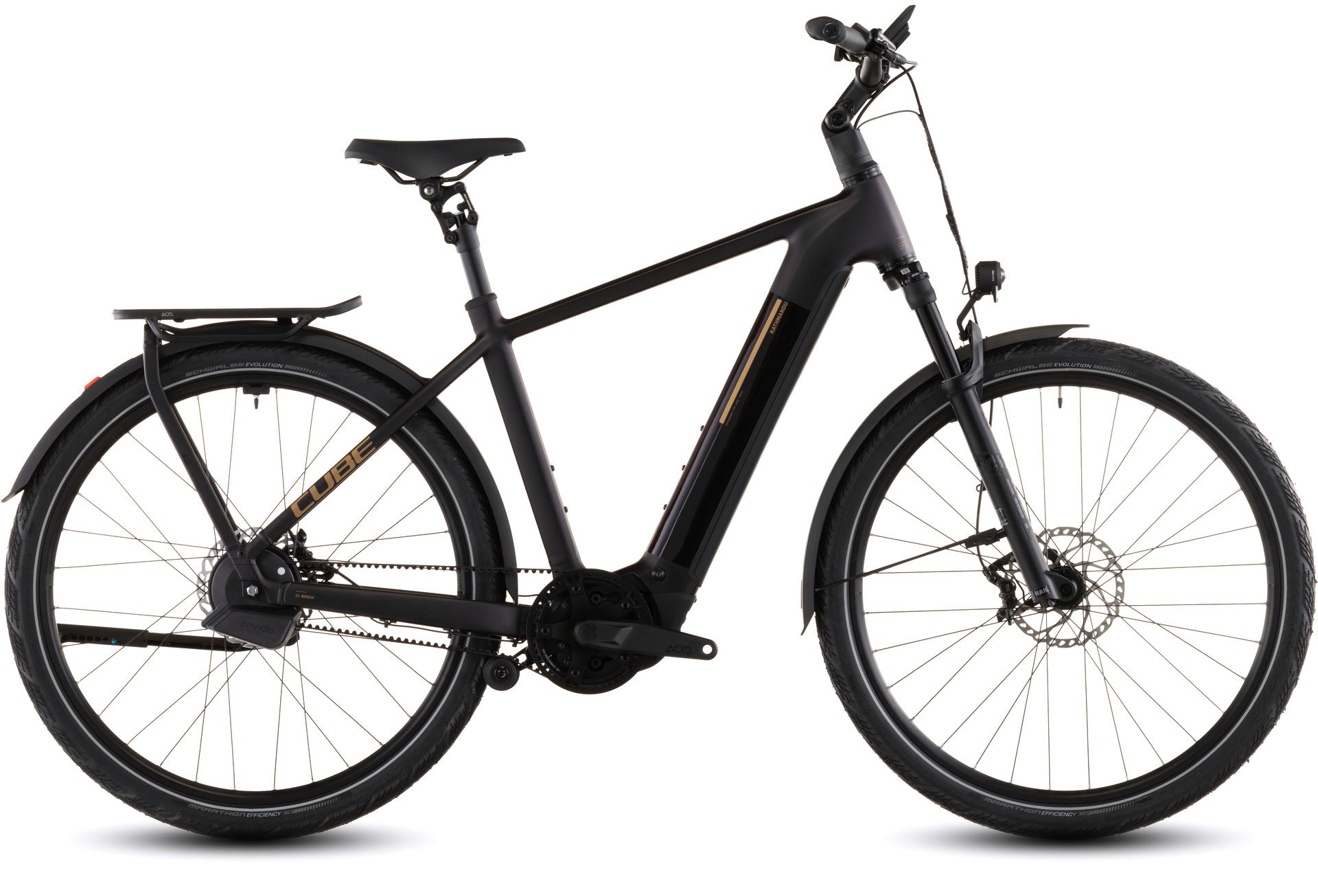 Der Rahmen des CUBE Kathmandu Hybrid sieht auf den ersten Blick vielleicht unspektakulär aus – auf den zweiten erschließen sich jedoch seine Eleganz und Klasse, außerdem die vielen Innovationen und cleveren Details. Dabei ist der samt 800 Wh PowerTube Akku ästhetisch und sauber ins Design integrierte CX Motor von Bosch nur eins der Highlights. Ein weiteres ist unsere Efficient Comfort Geometry, die harmonisch mit der 100 mm Federgabel Hand in Hand arbeitet, was die Kontrolle vor allem bei schwierigen Bedingungen optimiert. Dazu die interne Zugverlegung, die den cleanen Look des Chassis unterstreicht. Was noch? Ein vielseitiges, beinahe unzerstörbares UDH für einfache Ersatzteilverfügbarkeit, ein integrierter Kettenschutz und unser stabiler, robuster, überaus formschöner integrierter Gepäckträger IC 3.0, auf dem alles Platz findet, was auf Abenteuertour mit muss.