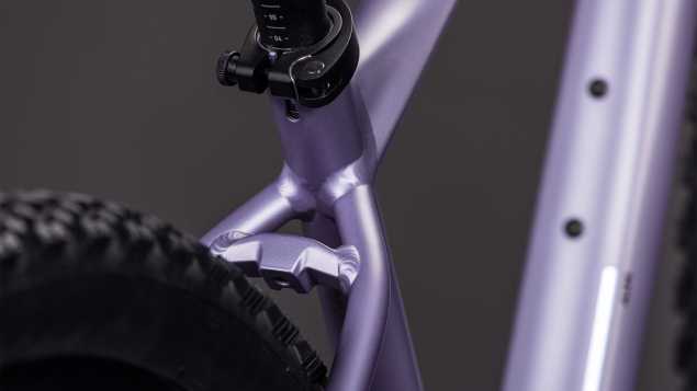 Der Aim Rahmen besticht mit seinem supercleanen Look – verantwortlich dafür: die im Smooth Welding Verfahren hergestellten Verbindungen an Steuerrohr und Sattelrohr und die ins Innere verlegten Züge, welche die aufgeräumte Optik noch unterstreichen. Außerdem gibt's ein geschraubtes Tretlager und eine Aufnahme für Flat Mount Scheibenbremsen, die nahtlos in die Seitenständeraufnahme integriert ist. Montagepunkte für ACID Schutzbleche und Gepäckträger sind auch mit dabei. Die spezielle Geometrie hat ein niedrigeres Oberrohr für superzuverlässiges Handling und lässt genug Platz für breite, griffige, komfortable 2.25 Zoll Reifen. Dazu ist unser Size Split System breit aufgestellt – so finden alle das für sich und ihre Körpergröße perfekt passende Aim.