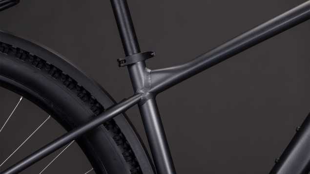 Der Aim Rahmen besticht mit seinem supercleanen Look – verantwortlich dafür: die im Smooth Welding Verfahren hergestellten Verbindungen an Steuerrohr und Sattelrohr und die ins Innere verlegten Züge, welche die aufgeräumte Optik noch unterstreichen. Außerdem gibt's ein geschraubtes Tretlager und eine Aufnahme für Flat Mount Scheibenbremsen, die nahtlos in die Seitenständeraufnahme integriert ist. Montagepunkte für ACID Schutzbleche und Gepäckträger sind auch mit dabei. Die spezielle Geometrie hat ein niedrigeres Oberrohr für superzuverlässiges Handling, ein konisches Steuerrohr für 1a-Lenkpräzision und sie lässt genug Platz für breite, griffige, komfortable 2.25 Zoll Reifen. Dazu ist unser Size Split System breit aufgestellt – so finden alle das für sich und ihre Körpergröße perfekt passende Aim.