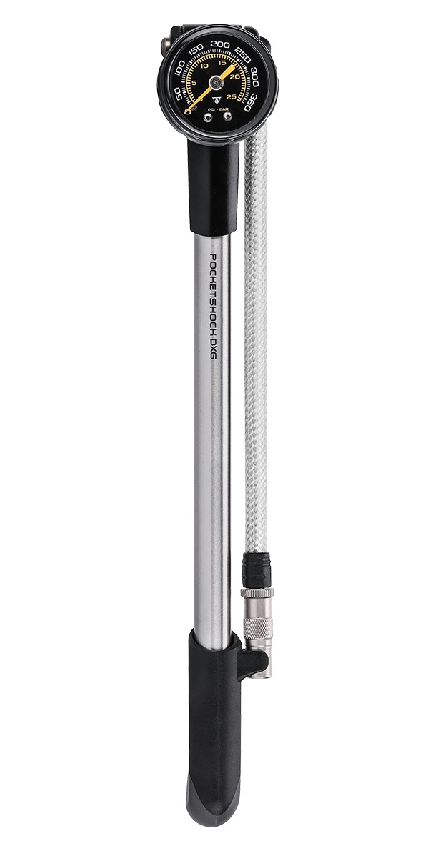 Der XL-Bruder der PocketShock DXG, arbeitet genau so präzise, kommt aber mit einem größeren Zylinder zum schnelleren Befüllen. Die großzügige Anzeige erlaubt das exakte Ablesen von Drücken bis 24,8 bar/360 psi. Der Luftablassknopf und der Pressure-Rite Ventilanschluss erleichtern das Einstellen und verhindern, dass beim Abschrauben Luft entweichen kann. Der flexible, besonders langlebige Stahlflexschlauch schont das Ventil während des Pumpens. Perfekt für die tägliche Arbeit in der Profi-Werkstatt.