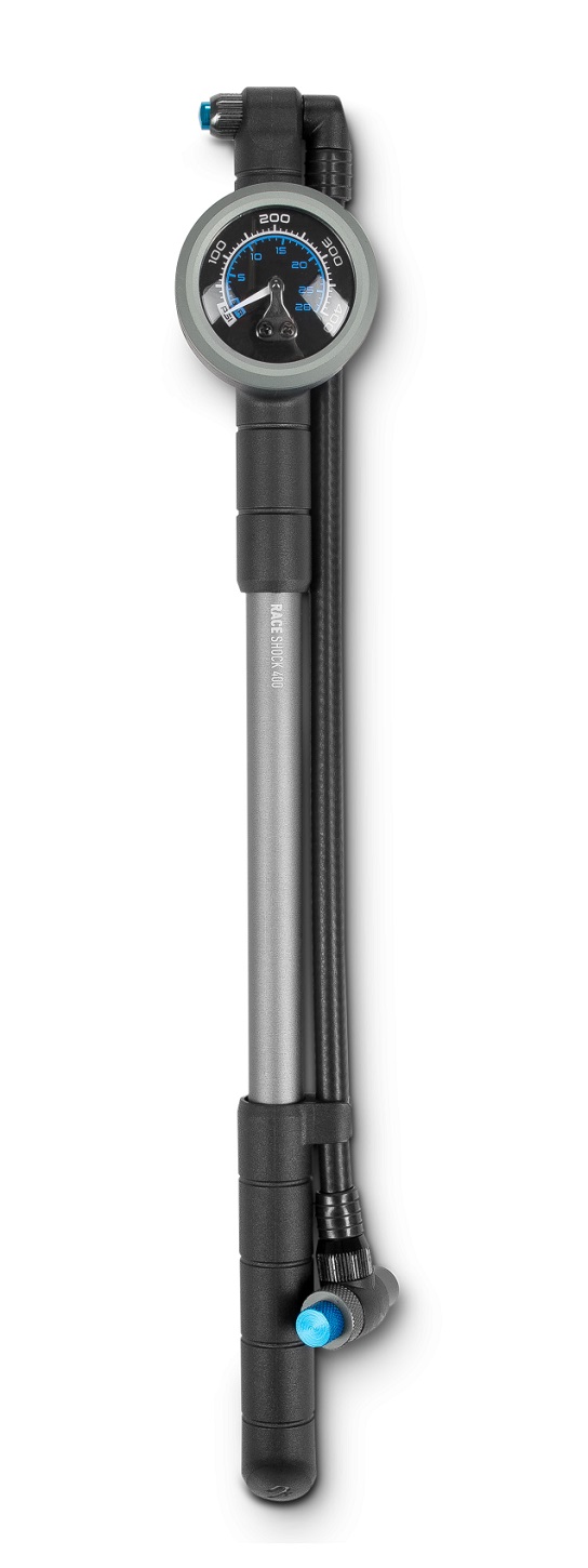 High-End Dämpferpumpe mit 2-stufigem Schrader-Ventilkopf für sicheres Abschrauben ohne Luftverlust. Speziell für höhere Drücke bis 400 psi und mit NF Ergonomics Griff. Exakte Fahrwerkseinstellung dank Präzisionsmanometer und Luftablass-Ventil zum Feinjustieren.