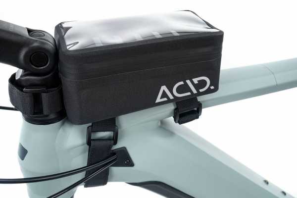 Die ACID PRO 1 Oberrohrtasche aus PVC-freiem TPU ist bestens gewappnet gegen schlechtes Wetter und mit ca. 1 Liter Stauvolumen sind Energieriegel, Geldbörse, Werkzeug und Co. schnell greifbar verstaut. Das große Smartphone-Fach bietet Platz für alle Smartphones mit einer maximalen Länge und Breite von 17 x 8,5 cm und mit der empfindlichen Touchscreenfolie lässt sich meine Handynavigation schnell und einfach bedienen.