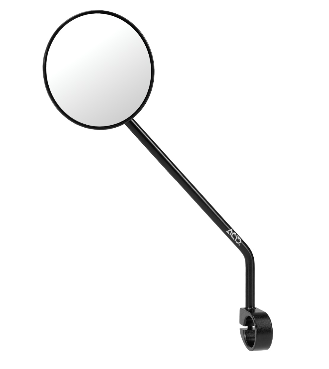Für mehr Sicherheit und Überblick im Straßenverkehr: Der ACID Mirror TOUR bietet durch seinen langen Arm eine komfortable Sichthöhe, auch wenn man sehr aufrecht auf dem Rad sitzt. Dank Kugelgelenk ist er individuell anpass- und einstellbar. Die Spiegelklemme wird anstelle der Griffklemme montiert und funktioniert mit allen ACID Griffen.
